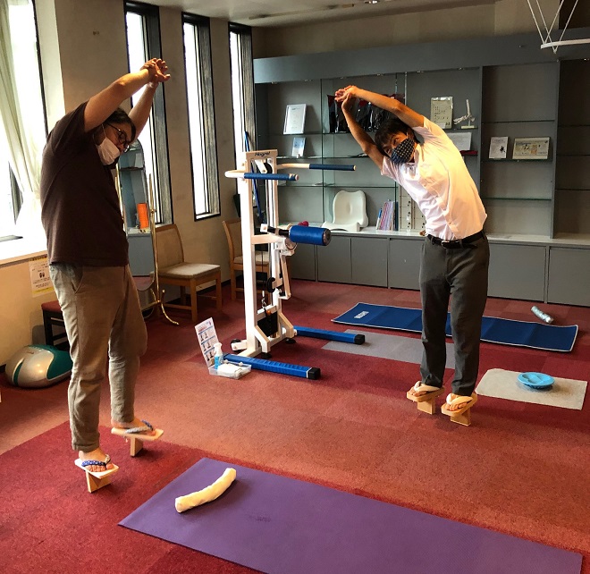 先日、T-FOOTのメンバーが集まり川村コーチの一本歯下駄講座を行いました。メンバーの身体の症状をあげて、それぞれ川村コーチがアプローチをします。自分達のプロダクトの品質チェックや改良点などの意見交換の場としても、とても有意義な時間を過ごせました。